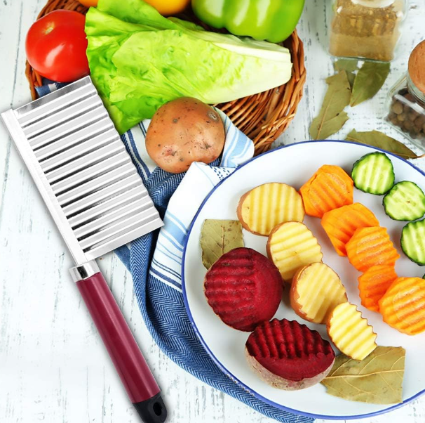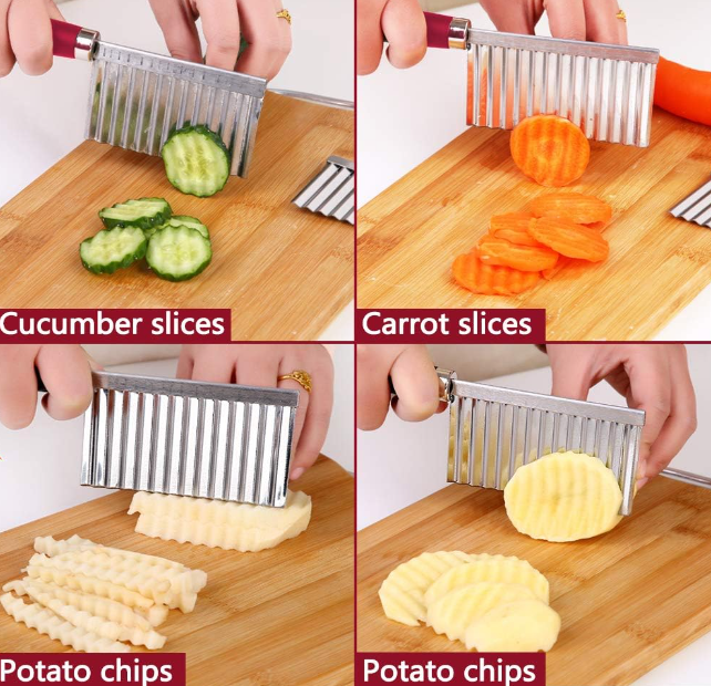 Acum poti felia foarte rapid si usor legumele si branzeturile tale preferate cu acest cutit ondulat.