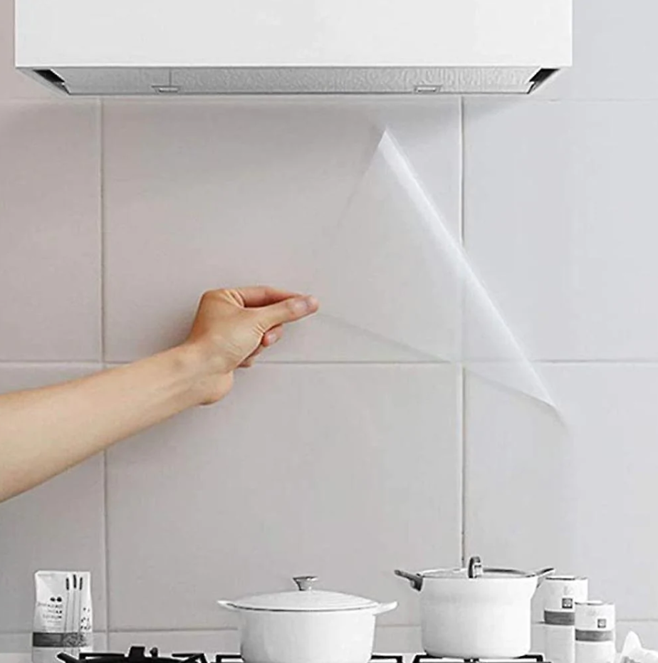 1 + 1 GRATIS – Folie de protectie transparenta pentru bucatarie, autocolanta, rezistenta la temperaturi mari, 60x200cm