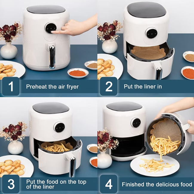 Hartia de copt mentine air fryer-ul curat si il protejeaza de reziduuri si grasime.