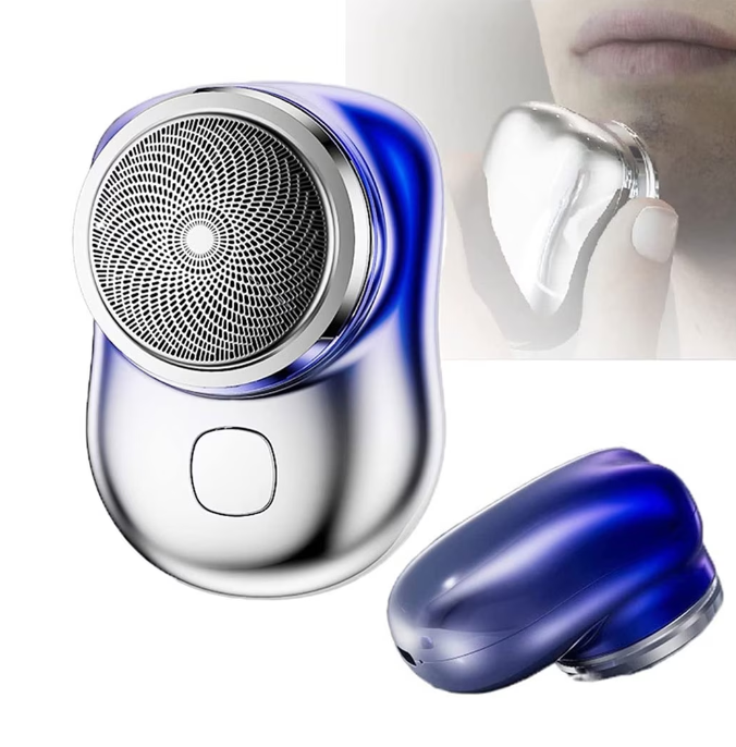 1 + 1 PROMO - Aparat de ras electric, portabil, cu lame rotative, reincarcabil, albastru