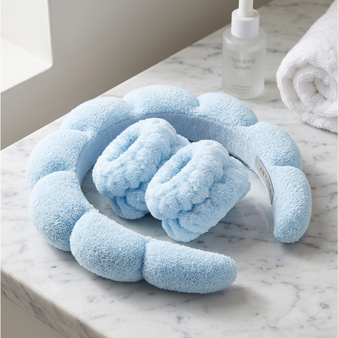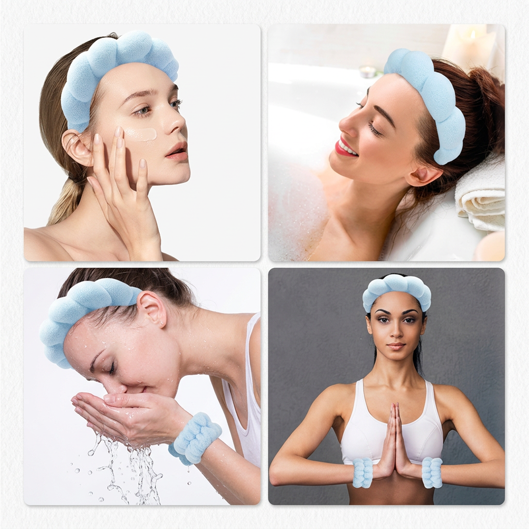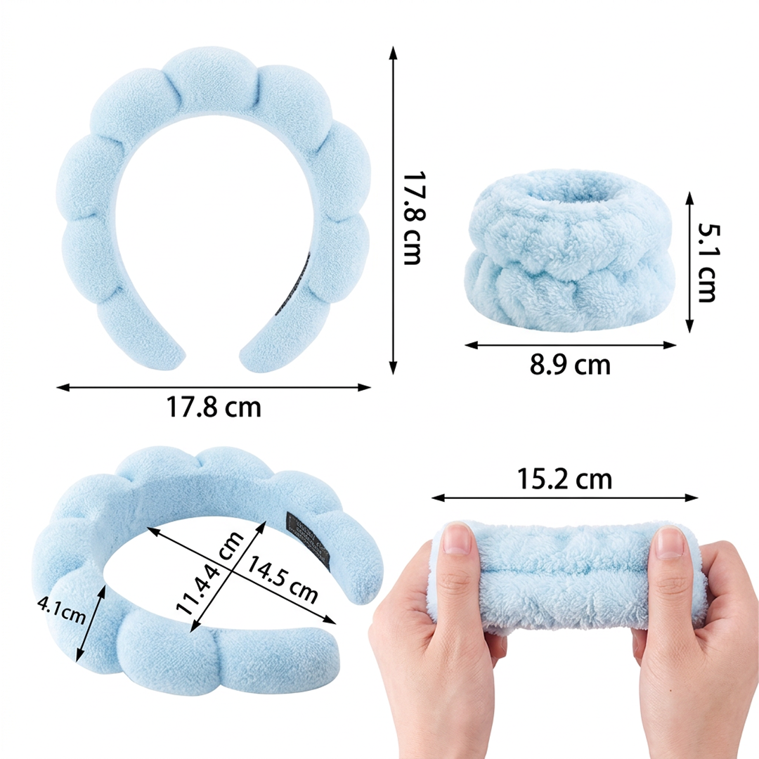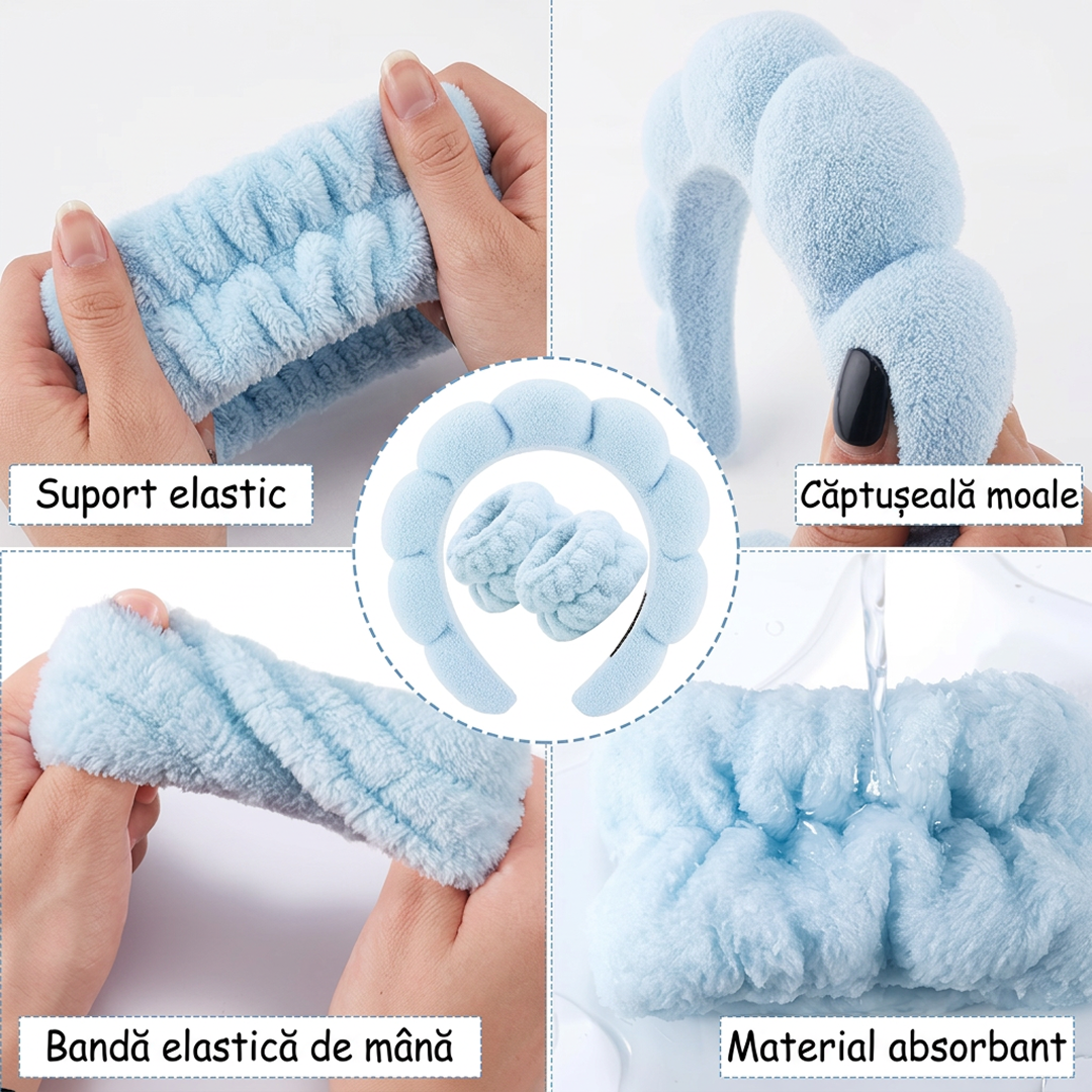 Setul SPA format din banda de par si mansete pentru incheieturi este ideal pentru rutina zilnica de ingrijire. Fabricat din fleece coral moale si absorbant, previne scurgerea apei pe maini si protejeaza parul in timpul spalarii fetei sau aplicarii produselor cosmetice.