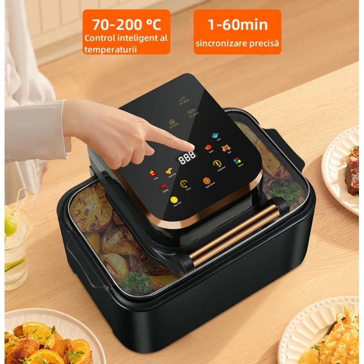 Friteuză cu aer cald 6-în-1 cu fereastră panoramică 270° și tehnologie de gătire uniformă