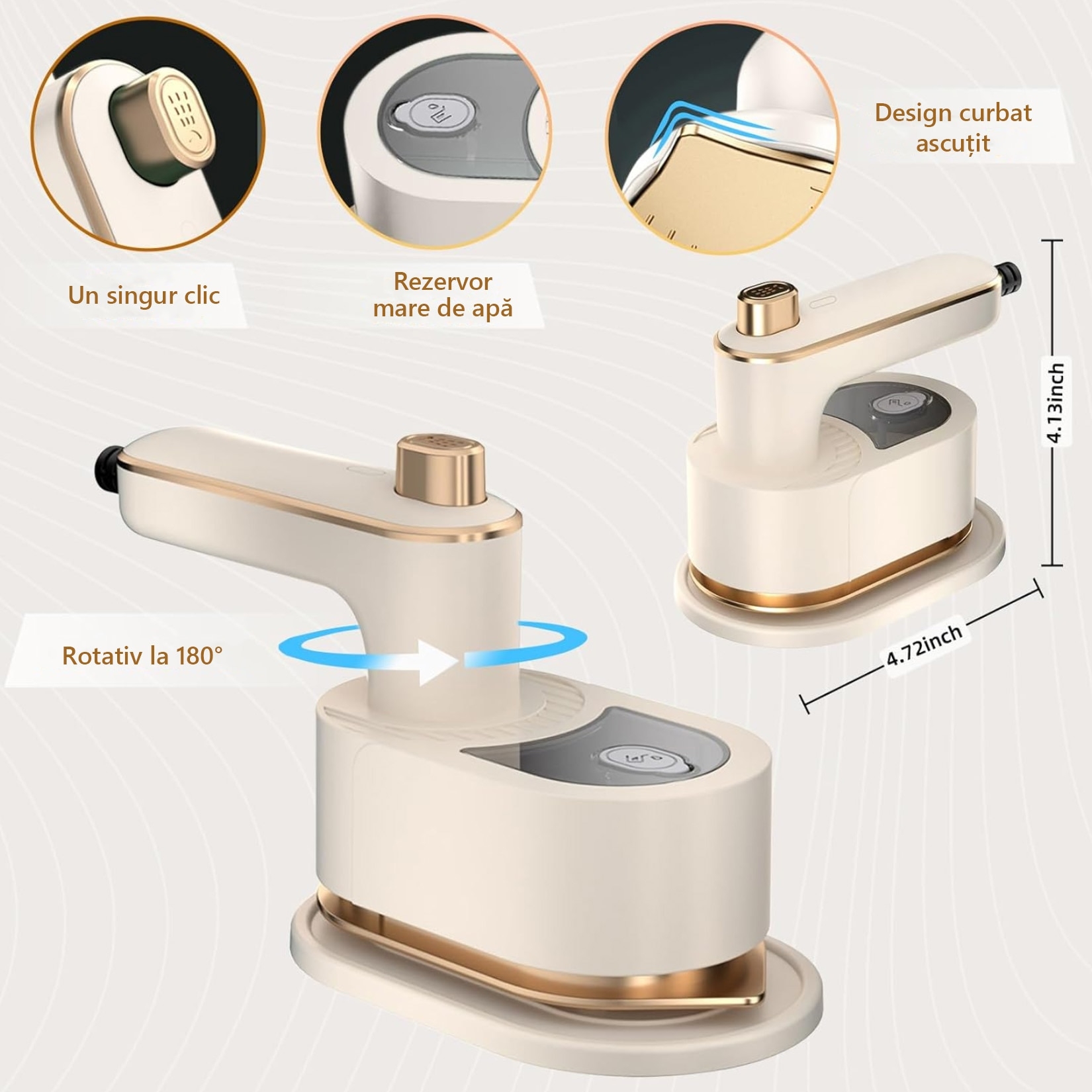Fier de călcat portabil ZUNSEAT, pliabil și rotativ, cu rezervor vizibil de 50 ml – ideal pentru acasă și călătorii.
