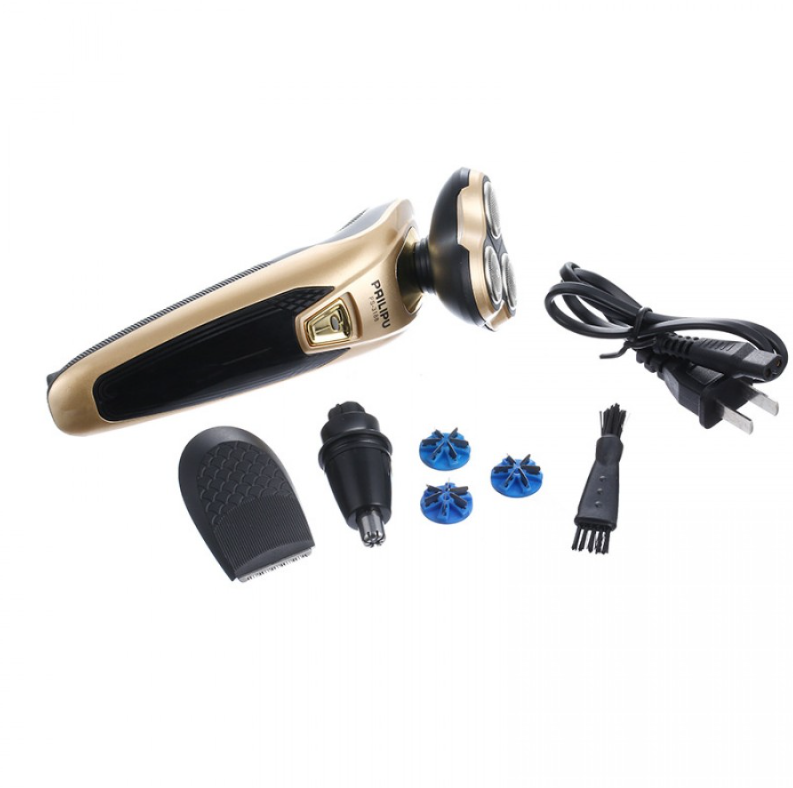 1.Trei capete de ras rotative interschimbabile: un cap pentru barbierit, un cap trimmer si unul pentru curatat parul din nas/urechi.