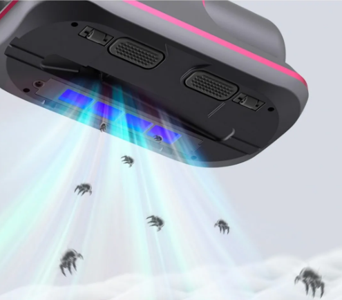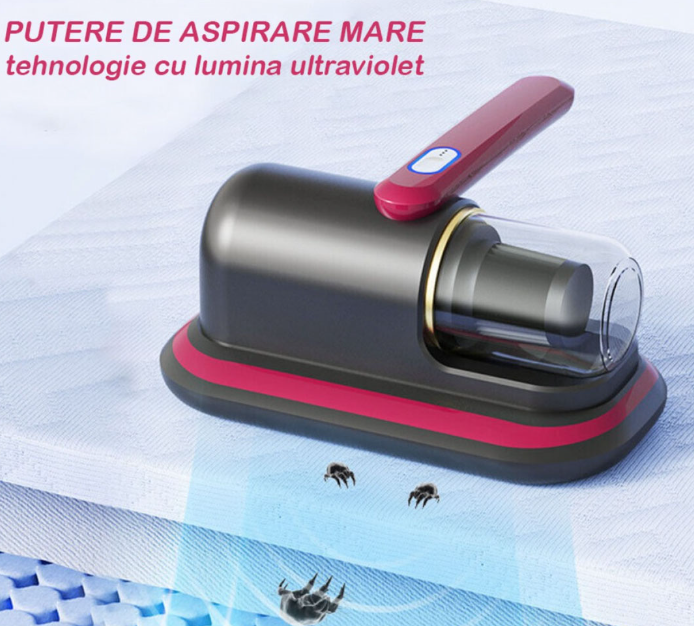 Tehnologie de aspirare UV-C: Mașina utilizează lumina UV-C și are o putere mare de aspirație (8000pa) pentru a înlătura acarienii, praful și murdăria de pe suprafețe precum saltele, lenjerie de pat, canapele, covoare și altele.