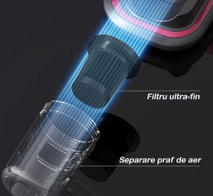 Funcționare fără fir: Dispozitivul funcționează pe acumulator, permițându-vă să vă deplasați liber și să curățați diverse suprafețe fără restricția cablurilor.