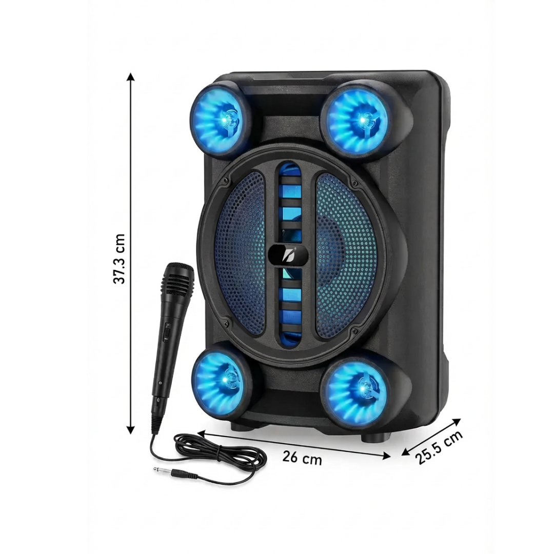 Aceasta boxa portabila este conceputa pentru divertisment zilnic, petreceri restranse si sesiuni de karaoke. Cu un difuzor de 8 inch si efecte luminoase RGB, ofera un sunet clar si suficient de puternic pentru utilizare in interior sau in aer liber.