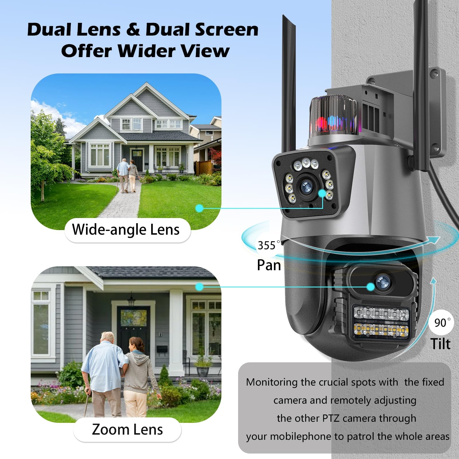 Lentilă dublă – acoperire extinsă și unghiuri multiple de monitorizare
