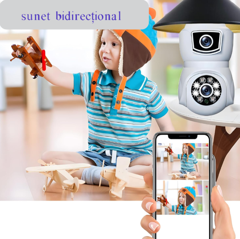 • Rotire: 355° orizontal, 90° vertical (control PTZ din aplicație)