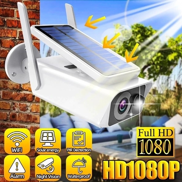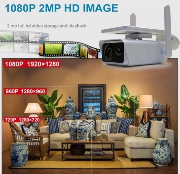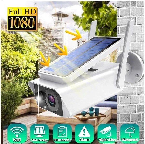 Camera Supraveghere ES-2R de Exterior, cu Panou Solar si WIFI, 1080P HD, 2 MP, IP 66, Slot TF Card, PIR, IR, Carcasa Metalica, 2 Antene, Suport Montare, Gri