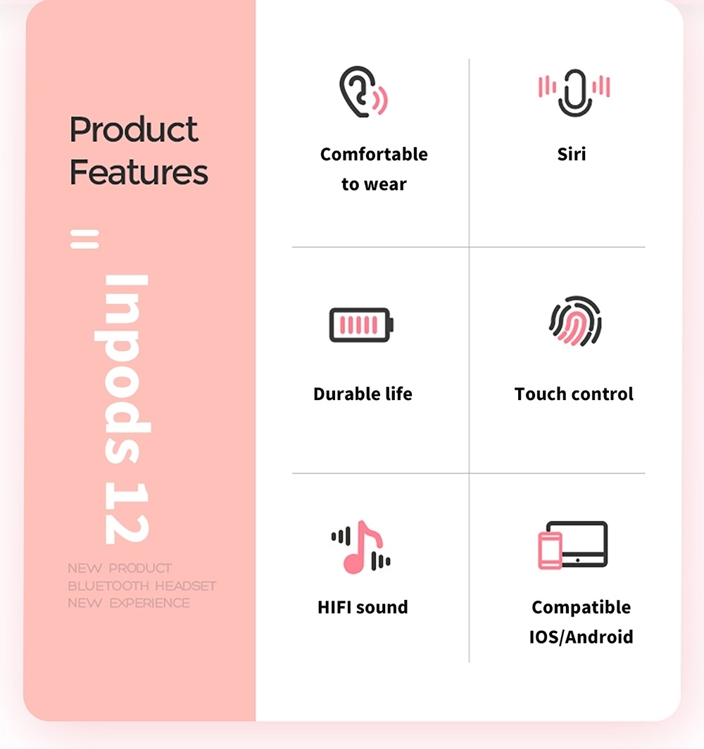 Casti wireless TWS i12, Dual Microfon, Bluetooth 5.0, Touch, Compatibile Android & iOS, Last edition 2021