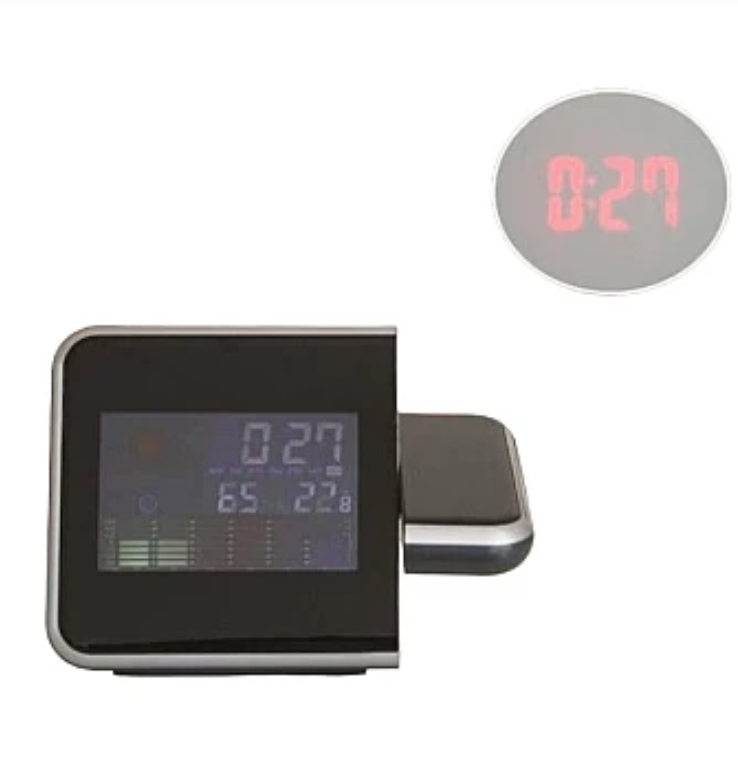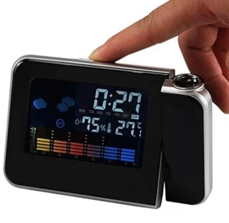 Ceas de birou, proiector cu LED reglabil, ecran LCD, alarma, data