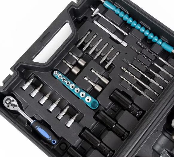Da, pachetul conține 43 de accesorii, valiză de transport, 2 acumulatori și încărcător rapid.
