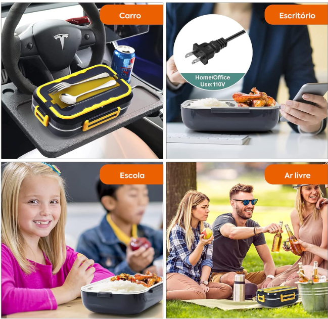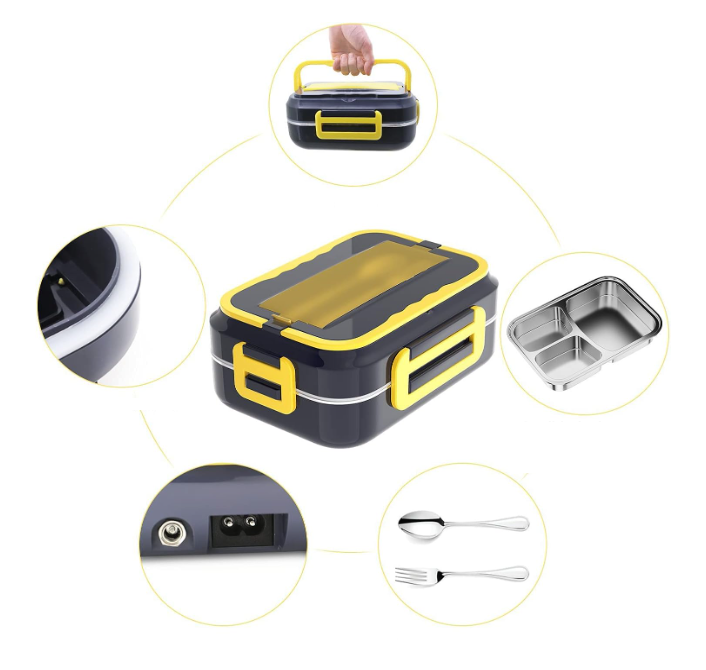 Aceasta cutie de pranz incalzita electric accepta 110V pentru casa/birou + 12V pentru 24V pentru masina si camion.