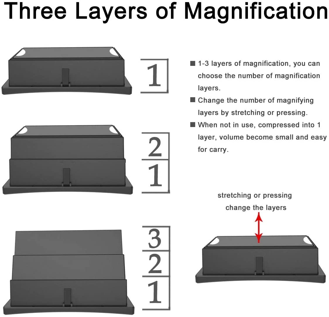 Ecran lupa cu efect 3D pentru telefoanele mobile. Ecranul functioneaza pentru orice tip de smartphone, indiferent de dimesiunile ecranului acestuia. Poate fi folosit pentru marirea imaginilor, a filmelor si chiar a jocurilor video, protejandu-va astfel ochii si redand o calitate mai buna. Veti putea folosi produsul oriunde, fara sa fie conectat la energie electrica. Ecranul de amplificare Imagine nu are nevoie de cablu de conectare sau de alte accesorii in plus, fiind usor de folosit oriunde si oricand.