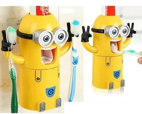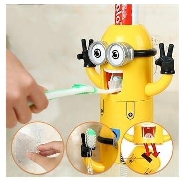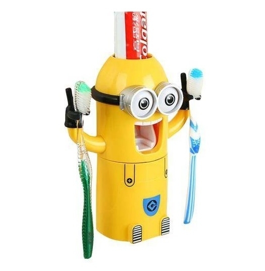 Dozator pasta de dinti cu suport pentru 2 periute, model Minions