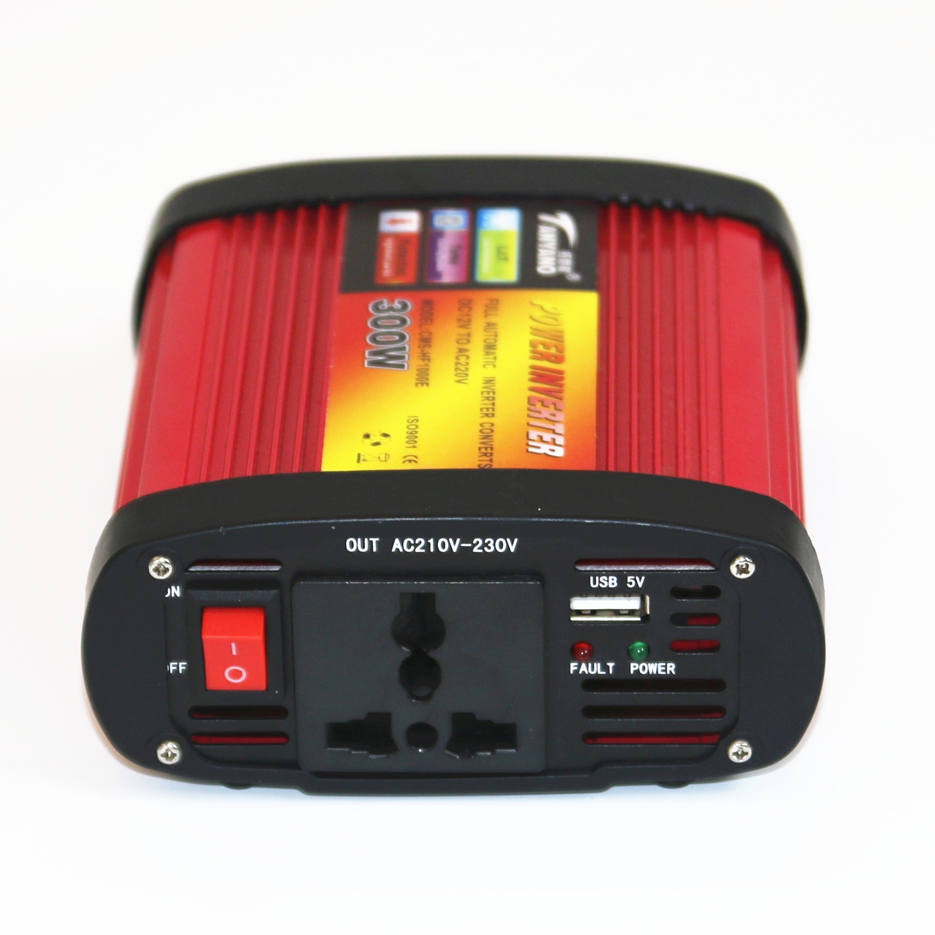 Convertor de tensiune 12V la 220V–240V cu o putere reală de 300W, ideal pentru majoritatea echipamentelor electrice de uz personal.