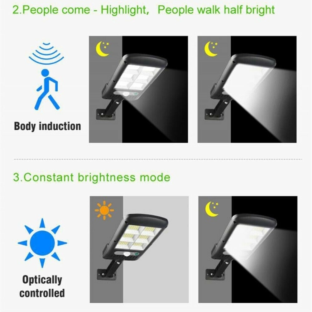 Lampa solara stradala 225 LED SMD, cu senzor de miscare, panou solar incorporat, brat de montare inclus si telecomanda cu functii multiple de setare a intensitatii luminoase si timpului de functionare Smartmall