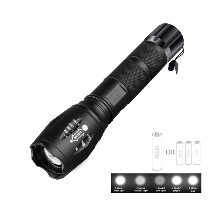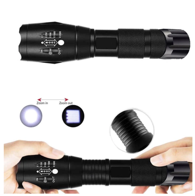 Lanterna este un accesoriu nelipsit care salveaza o multitudine de situatii neprevazute, fie ca va aflati intr-o drumetie, intr-o zona cu conditii de iluminat precare sau sunteti surprins intr-o calatorie pe timp de noapte de evenimente neasteptate, este recomandat sa aveti mereu la indemana in masina, in casa sau la birou o lanterna puternica, precum aceasta. Conceputa pentru camping, pentru drumetii, pentru exercitii tactice aceasta lumineaza cu ajutorul unui LED SMD super luminos, cei 10000 lm fiind o sursa generoasa de lumina cu raza lunga de actiune, de aproximativ 500 m, bazata pe lentina convexa cu efect de lupa.