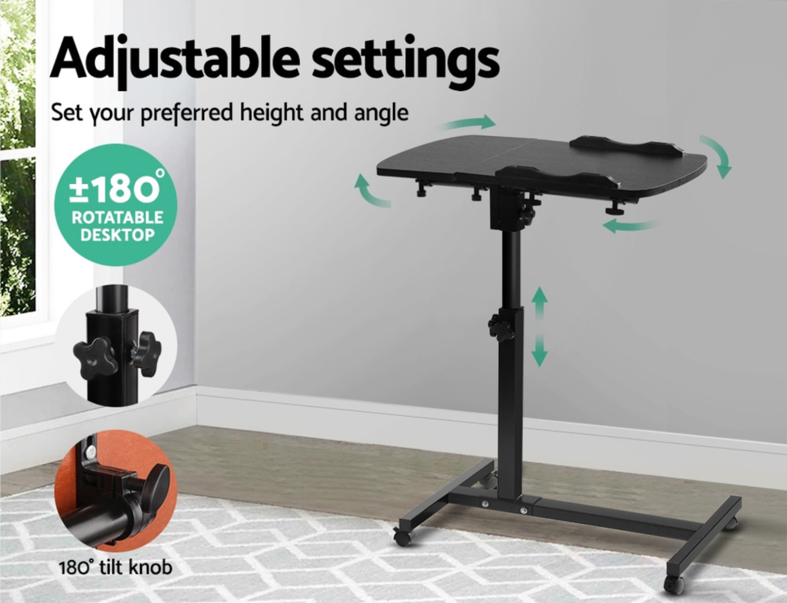 Masuta de laptop este reglabila si pe inaltime, se poate folosi in pat, stand pe un scaun sau canapea, de asemenea pentru persoane cu problemele de mobilitate, birou de copii, lucru comod la laptop de orice tip.
