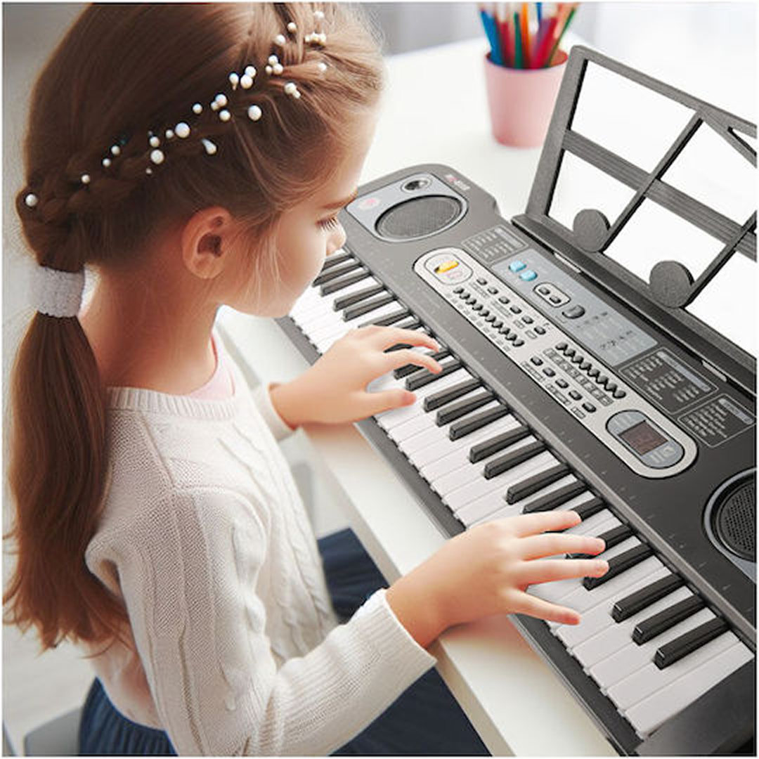 Orga electronica cu 61 clape si microfon, ideala pentru copii pasionati de muzica. Ofera experienta interactiva completa, dezvoltand creativitatea si abilitatile muzicale.