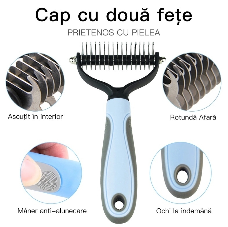 Perie pentru animale cu un desing nou, indeparteaza substratul mort de par cu ajutorul pieptenilor din otel inoxidabil, indiferent daca parul este mare sau scurt.