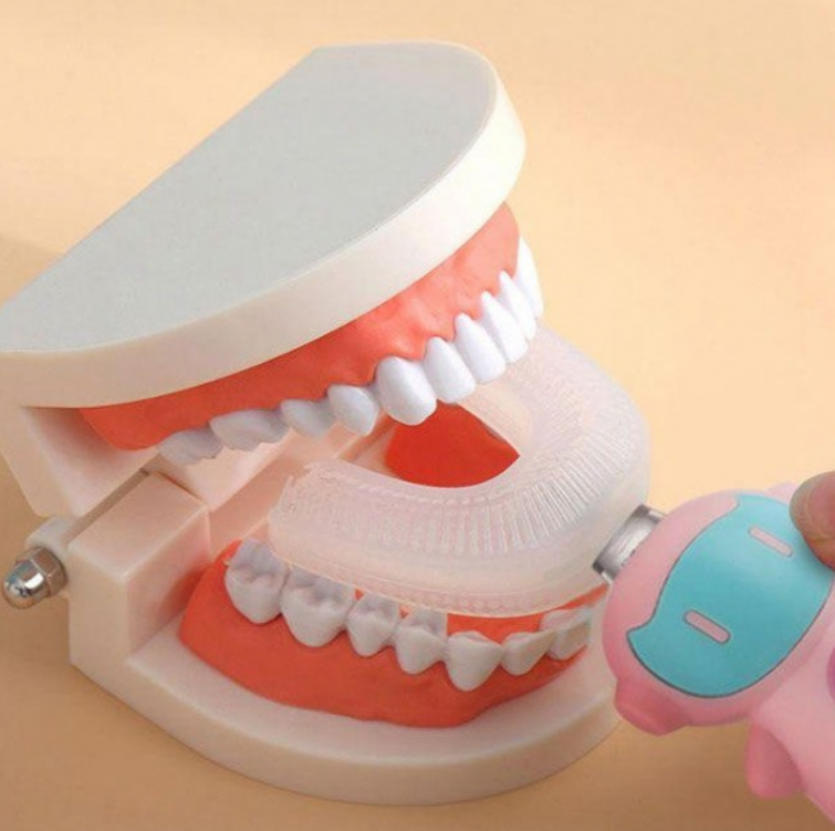Periuta de dinti electrica pentru copii, ,– este conceputa in forma de U, care este conturata in forma unei muscaturi de dinte si poate ajunge intr-o zona mai adanca decat periuta de dinti obisnuita. Combinand vibratia undelor sonore de inalta frecventa, poate curata rapid si profund suprafata si interiorul dintilor in toate directiile, oferind protectie pentru sanatatea dentara.