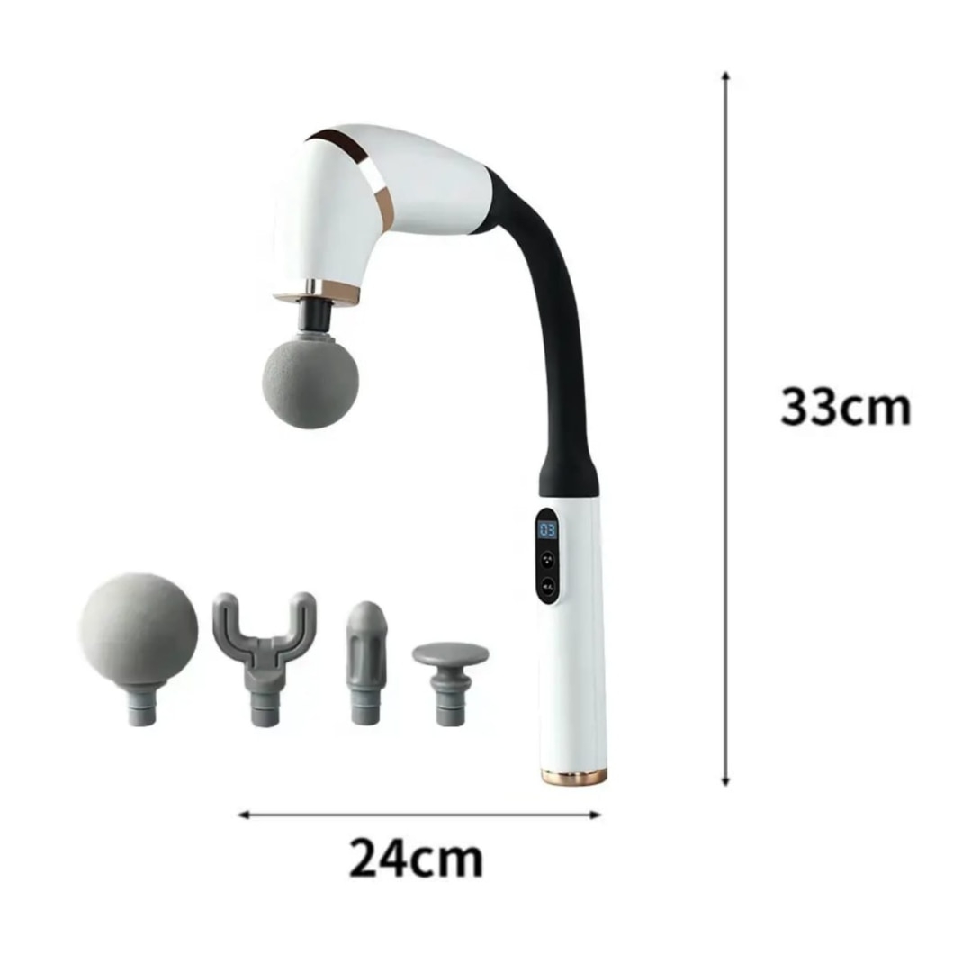Pistol de masaj tip Deep Tissue, ideal pentru relaxarea musculaturii, reducerea tensiunii si accelerarea recuperarii dupa efort. Design ergonomic cu maner extins la 120°, perfect pentru zone greu accesibile precum spate si umeri.