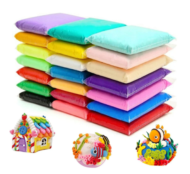 24 culori plastilina Super Light Clay cu ustensile de modelat.