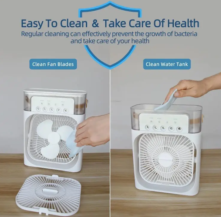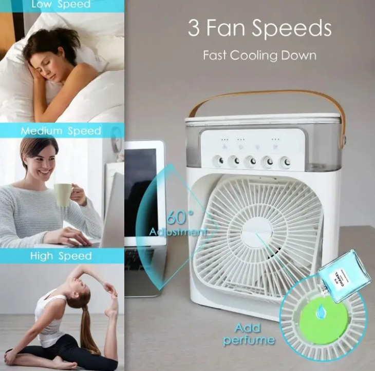 Ventilator Portabil 3-în-1 – Răcitor de Aer, Umidificator și Lampă LED