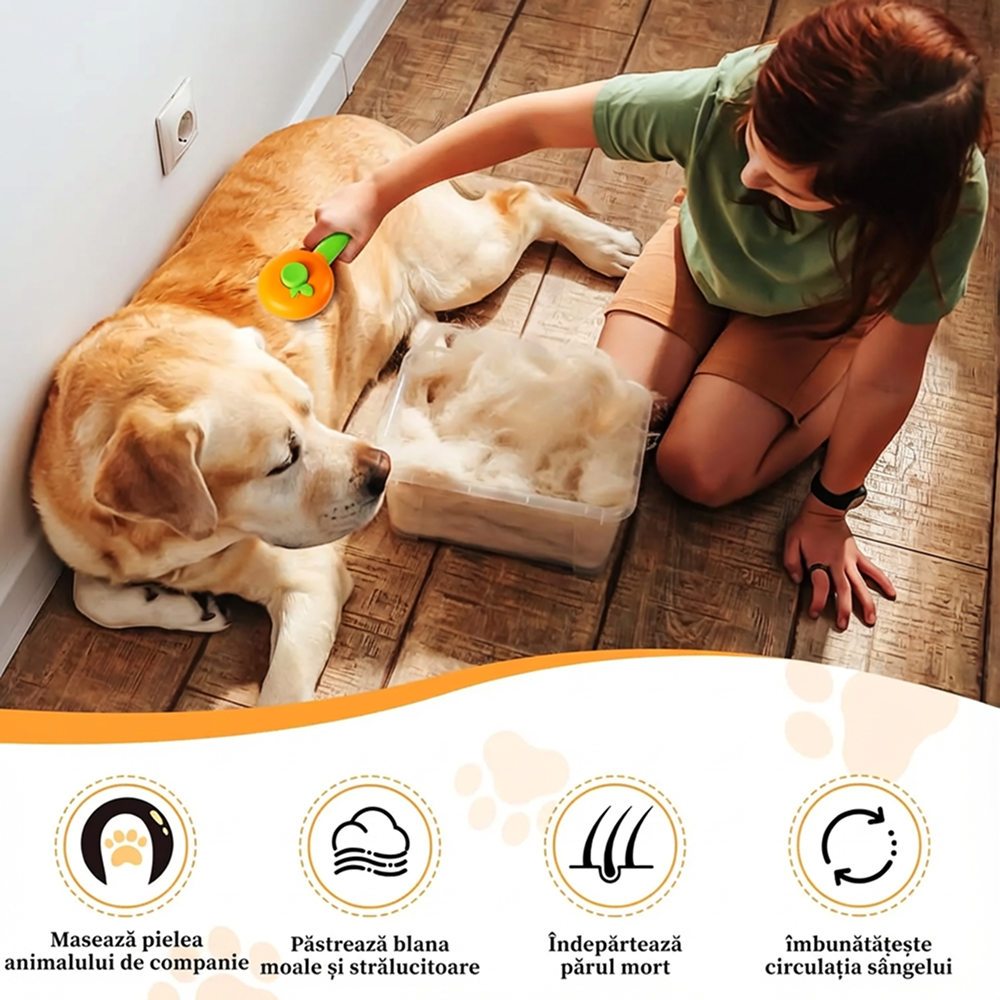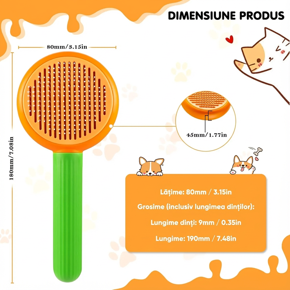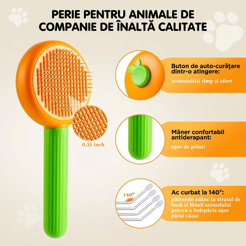 Peria pentru pisici si caini cu buton de auto-curatare este conceputa pentru indepartarea eficienta a parului mort si pentru intretinerea blanii sanatoase si lucioase. Datorita designului curbat si perilor fini cu varfuri protectoare, perierea devine un proces placut, sigur si relaxant pentru animal.
