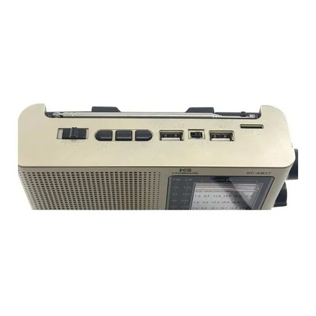 Radio portabil cu incarcare solara, conceput pentru utilizare zilnica si activitati outdoor. Permite ascultarea posturilor radio pe benzile FM, AM si SW, redarea muzicii de pe USB sau card TF si conectarea wireless prin Bluetooth.