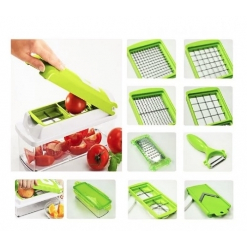 Razatoare multifunctionala pentru legume cu 7 cutite din inox este ideala pentru taiere fina si precisa, in stil julienne, tocare, maruntire, razuire, 1 recipient cu baza antialunecare, 1 protectie pentru mana.Razatoarea multifunctionala pentru legume cu 7 accesorii interschimbabile,se poate folosi si pentru depozitarea alimentelor in frigider, datorita capacului cu inchidere ermetica.