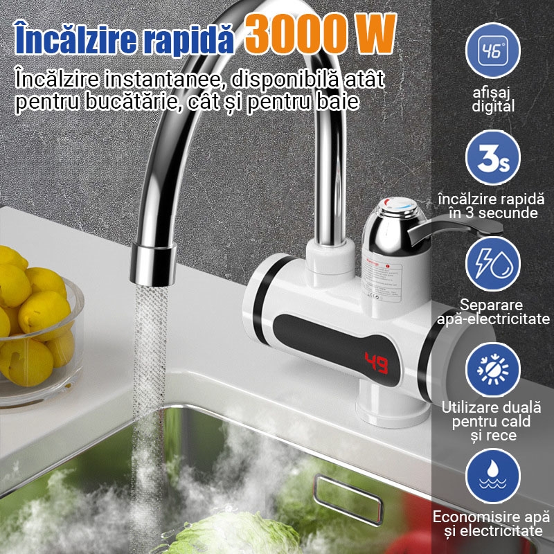 Robinet electric instant pentru apa calda, ideal pentru baie si bucatarie, care incalzeste apa in doar cateva secunde. Solutia rapida si eficienta pentru confort zilnic fara boiler.