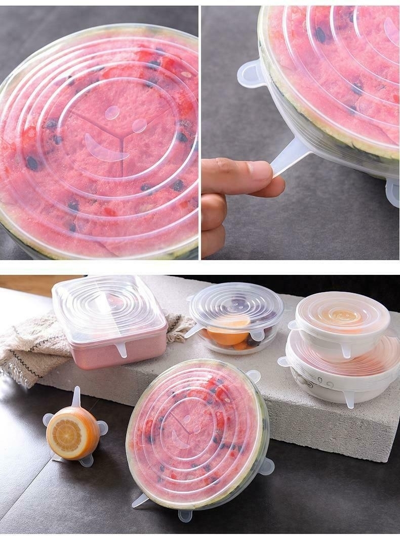 Capacele din silicon flexibil . Siliconul face ca recipientul sa ramana perfect etans, impiedicand aerul sa intre si sa descompuna alimentele, pastrand prospetimea acestora. Totodata veti preveni aparitia mirosurilor neplacute in frigider. Practice, utile si sigure, aceste capace din silicon se fixeaza pe recipientul dorit si prin apasare pe suprafata de silicon veti crea un vid in interior. . Chiar si cutiile dreptunghilare pot fi inchise ermetic. Super extensibile, se potrivesc pentru toate formele.