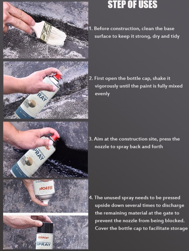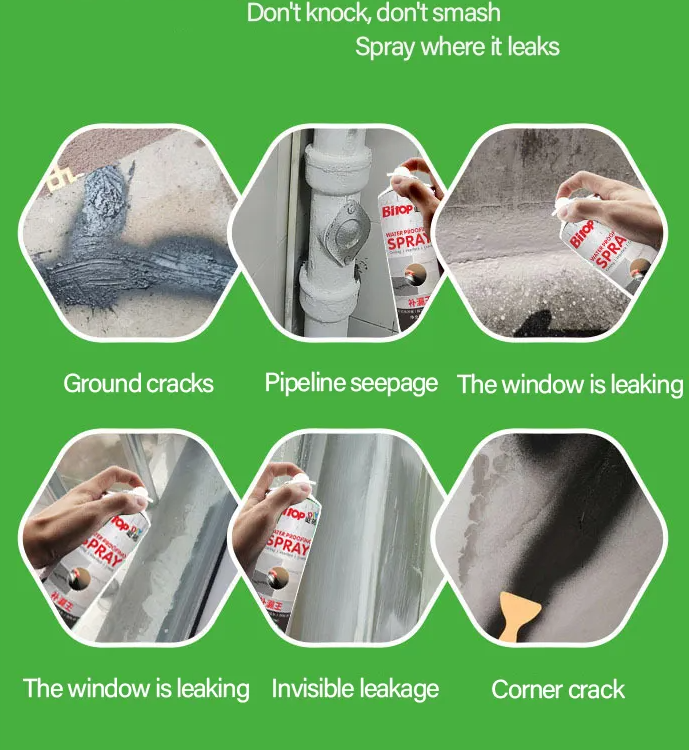 Spray-ul de etansare adera la multe suprafete precum sticla, metalul, plasticul, fibra, PVC, lemnul, emailul si multe altele.