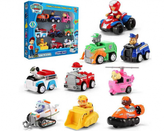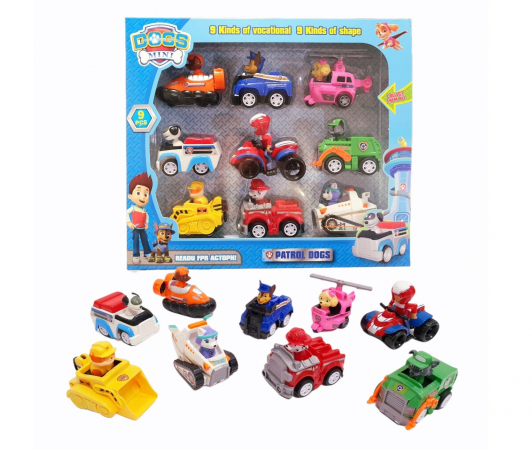 Set 9 Figurine cu Masinute Patrula Catelusilor