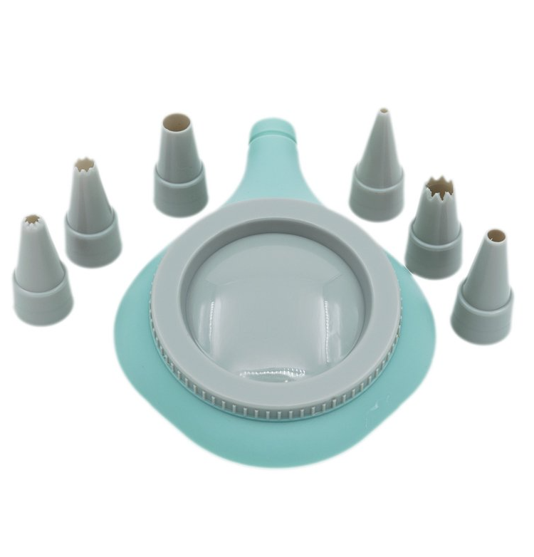 Setul este compus dintr-un dozator și 6 duiuri, fiecare având un scop specific în bucătărie. Dozatorul este realizat din material plastic rezistent și dispune de un mecanism practic de dozare, ceea ce îl face ideal pentru utilizarea în diverse rețete.