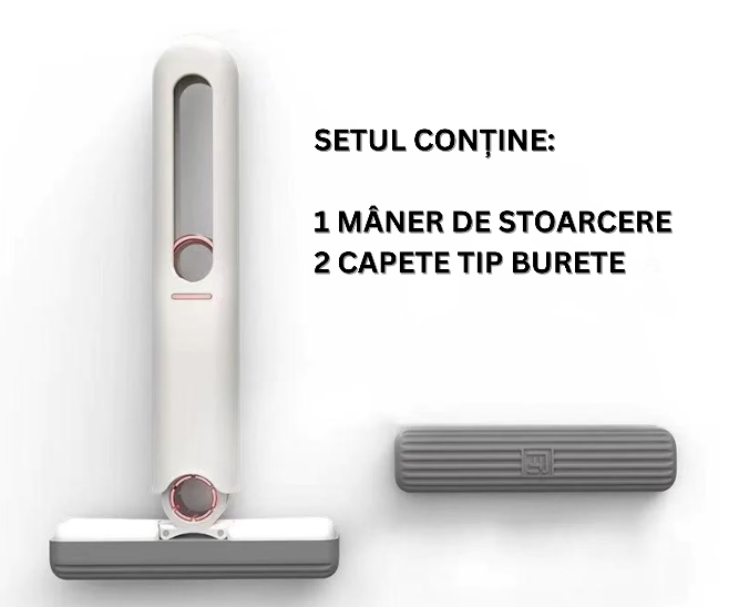 - Doua capuri de schimb pentru mop sunt incluse in set, iar capetele suplimentare de inlocuire pentru mop pot fi achizitionate separat. Capul de inlocuire al mopului este durabil si lavabil si este multifunctional pentru a sterge petele lichide.