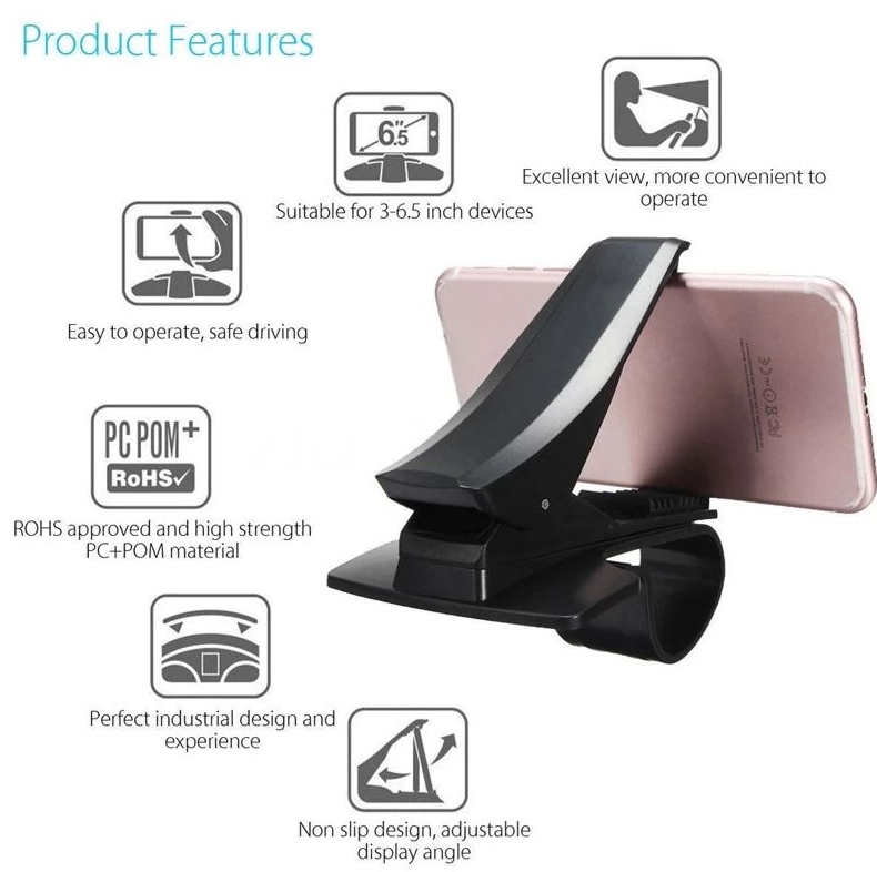 Telefonul se aseaza in suport iar acesta se strange blocand telefonul in pozitie fixa cu clema sa. Este compatibil cu toate smartphone-urile si GPS-urile. Rezista foarte bine in timp, avand o duritate corespunzatoare. Se fixeaza foarte bine de bord, fara a cadea. Acest suport pastreaza dispozitivul tau vizibil si la indemana pe bord. Ideal pentru navigare, ascultarea de muzica si apeluri cu mainile libere.
