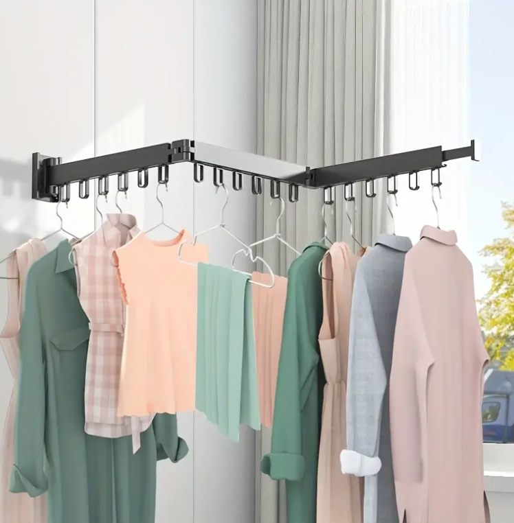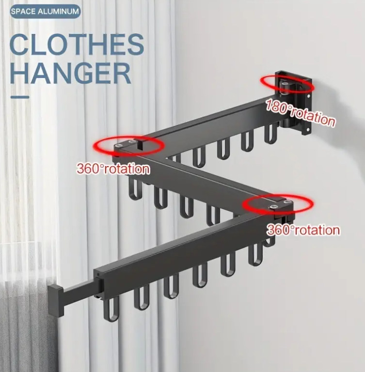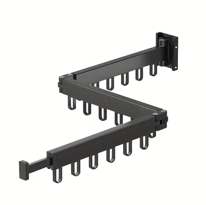 Economisirea spațiului: Designul inovativ triplu pliabil al suportului permite o economisire considerabilă a spațiului. Brațele pliabile și cele 18 carlige tip J fac din acest suport de uscare o soluție extrem de eficientă. Cand nu este utilizat, suportul poate fi repliat aproape de perete, ocupand un spațiu minim.