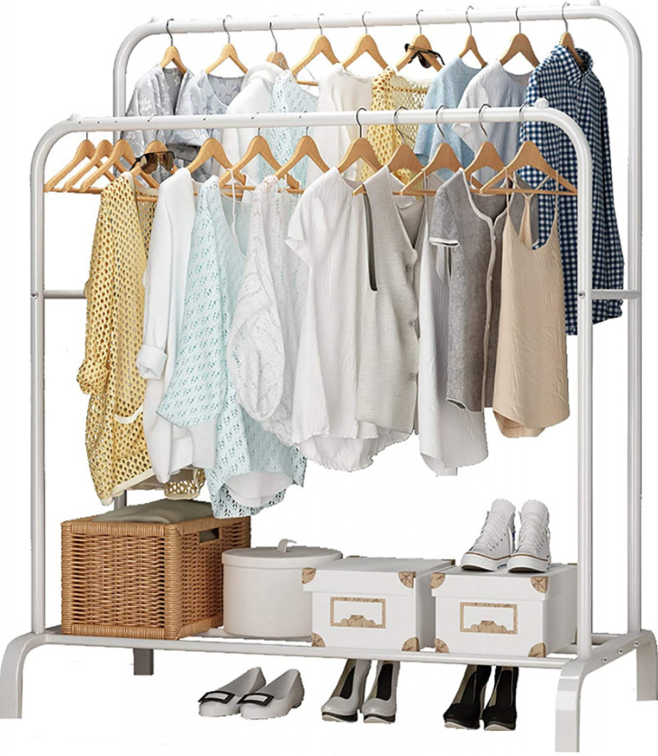 Suportul perfect pentru haine va poate satisface nevoile zilnice. Doua sine pentru haine pot gazdui dublul cantitatii de haine, iar partea de jos are un suport pentru pantofi si cutii de pantofi.