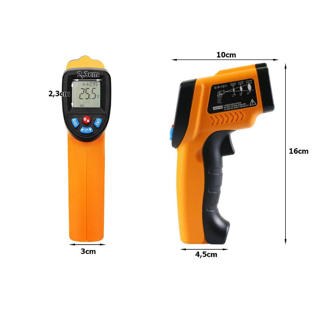 Acest termometru digital cu infrarosu este utilizat pentru masurarea temperaturii suprafetei obiectului, aplicabila pentru diverse obiecte periculoase sau greu accesibile fara contact, in siguranta si rapid.