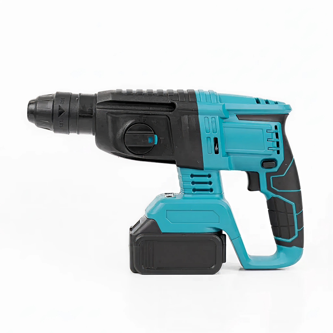 Trusa profesionala 4 in 1 cu 3 acumulatori 128V, conceputa pentru lucrari complexe in constructii, renovari si bricolaj. Setul include polizor unghiular, bormasina gaurit/insurubat, ciocan rotopercutor si masina de insurubat cu impact, plus lanterna LED pe acumulator ce poate fi utilizata si ca baterie externa.